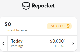 Repocketの1時間頭の収益状態