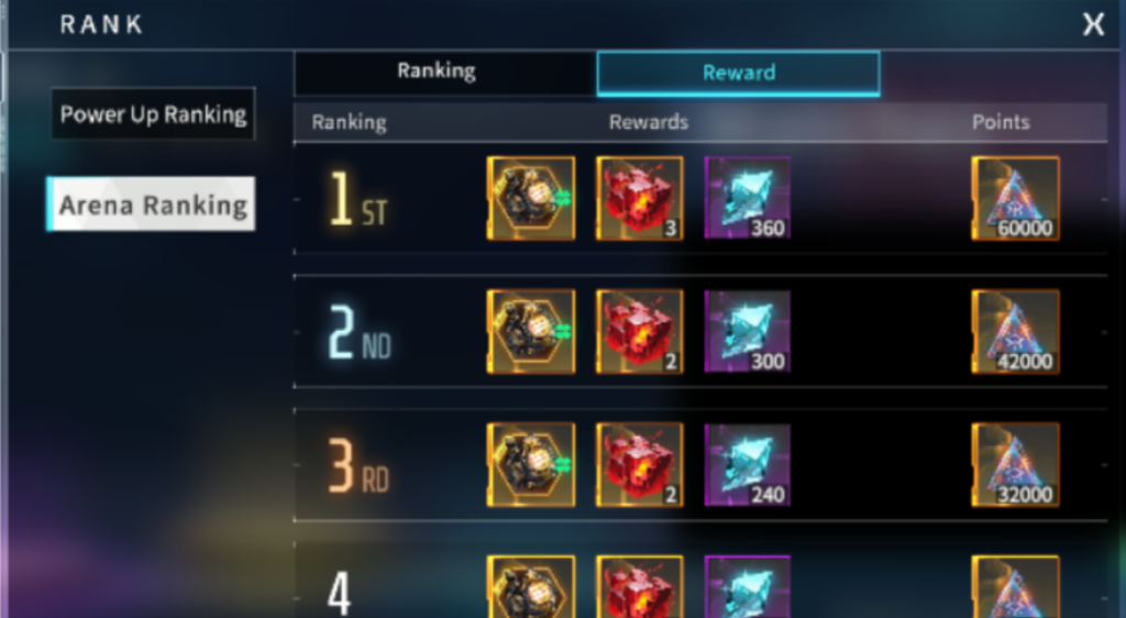 恐らく、MetaCeneと同じような感じでゲーム内イベントが進行されるのであれば、パワーアップランキングとアリーナランキングは、約13日後のクローズベータの終了時付近のデータが参照されると考えられます。