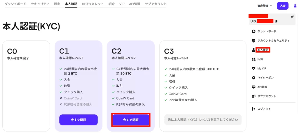 4.KYC(本人確認)の完了(任意ですが推奨)