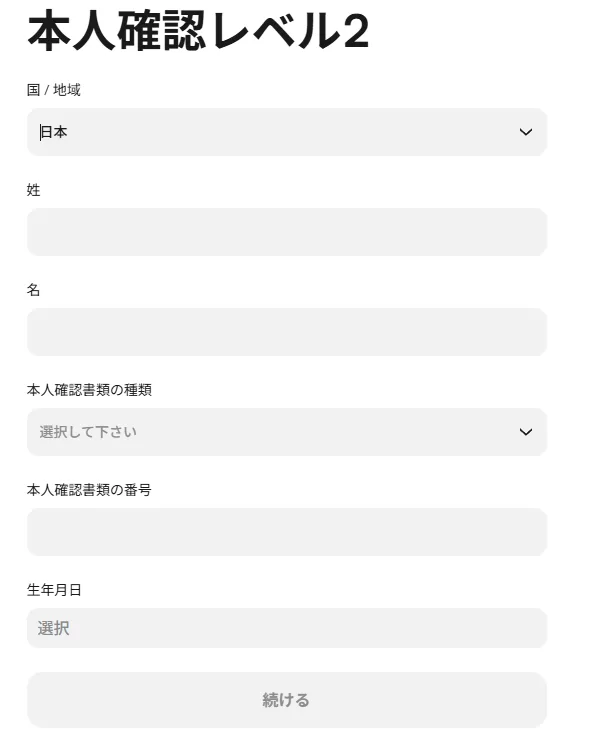 4-2.本人確認レベル2に必要な情報を入力します。