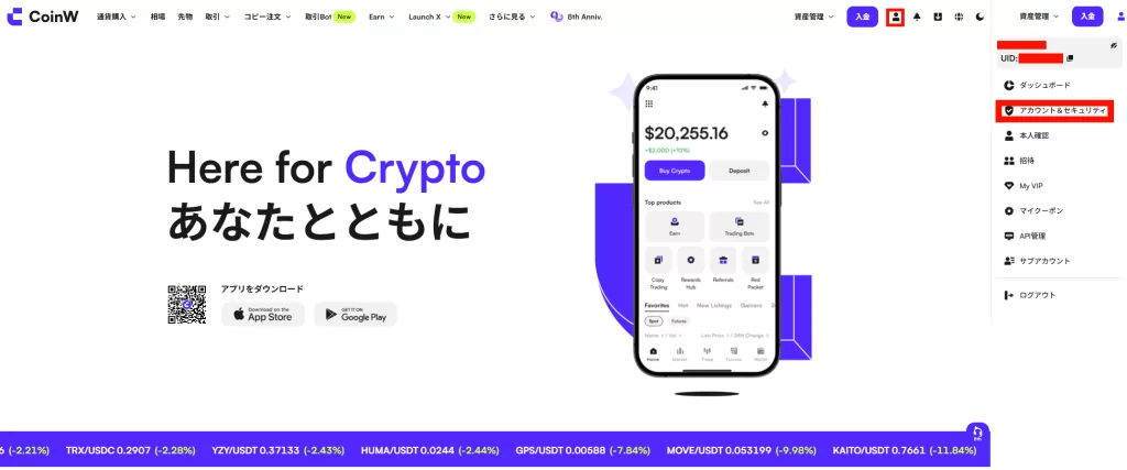 CoinWは、スポット・先物取引をはじめとする豊富な取引機能、最大200倍のレバレッジ、そしてコピー取引やトレーディングボットといった高度な戦略支援ツールを備えた、実用性の高い暗号資産取引所です。